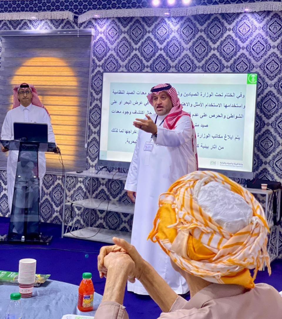 ضمن جهودها الراميه لرفع الوعي وتثقيف صيادي الاسماك ؛ اقام فرع وزارة البيئه والمياه والزراعه بمكه المكرمه ممثلا بمكتب البيئه بالليث ورشة عمل لصيادي المحافظة بعنوان (انظمة ولوائح الصيد) .