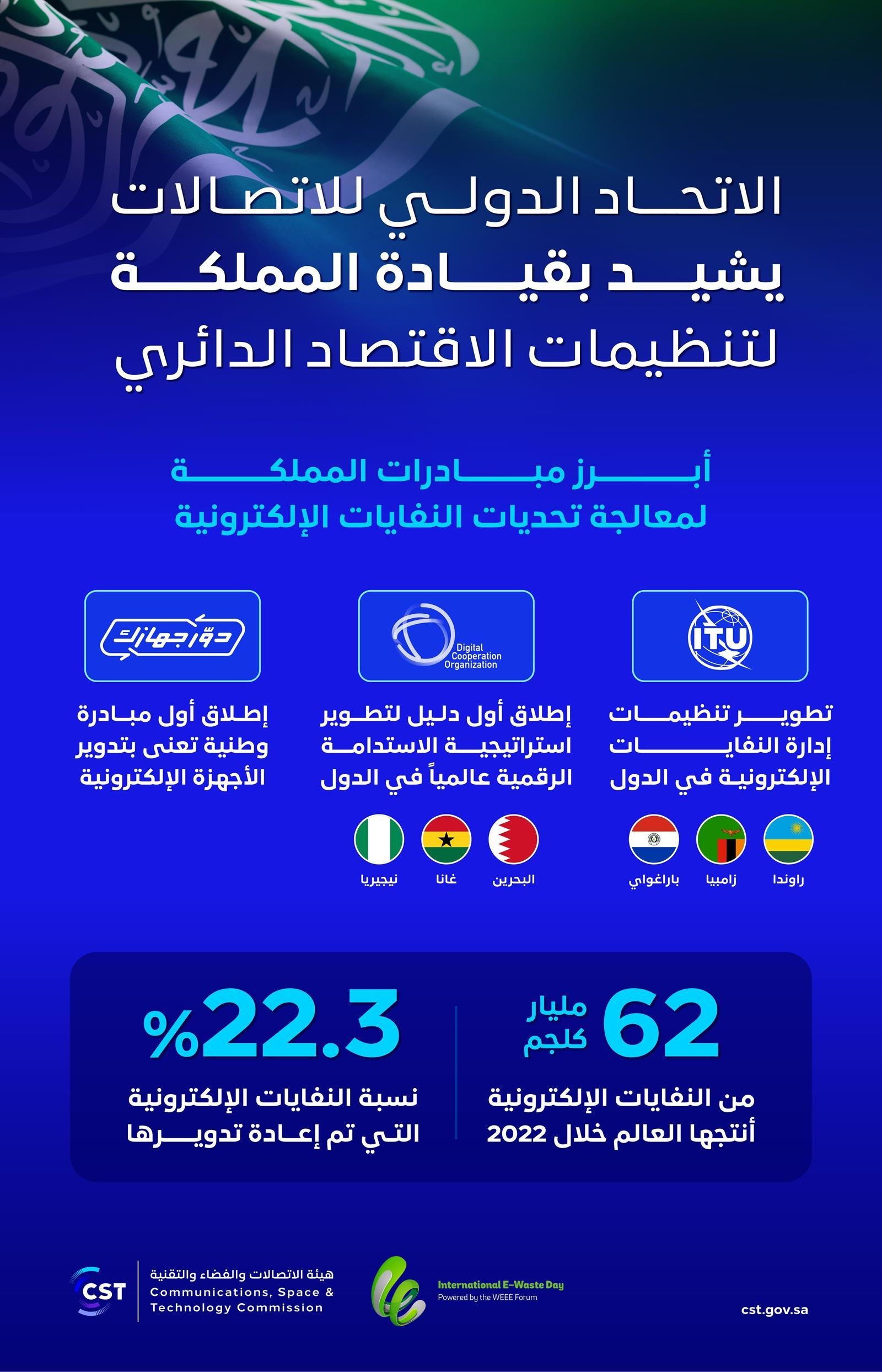 الاتحاد الدولي للاتصالات يشيد بجهود المملكة لتنظيمات الاقتصاد الدائري الرقمي