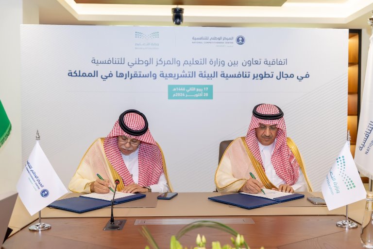وجرى على هامش الاجتماع توقيع اتفاقية تعاون بين وزارة التعليم والمركز الوطني للتنافسية بهدف تعزيز الأهداف المشتركة بين الجهتين في مختلف المجالات ودعم القدرات في المجال العلمي , إضافة إلى تبادل الخبرات والمعلومات العلمية والفنية والإدارية، والتنسيق حيال الشراكات والمؤتمرات والندوات وورش العمل وحلقات النقاش والفعاليات المحلية والدولية ذات العلاقة.