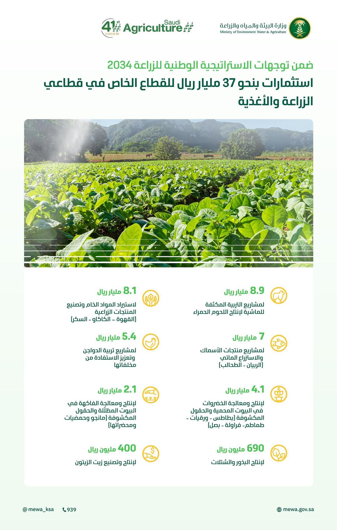 “البيئة”: استثمارات بنحو 37 مليار ريال للقطاع الخاص للمساهمة في تطوير واستدامة قطاع الزراعة والأغذية في المملكة