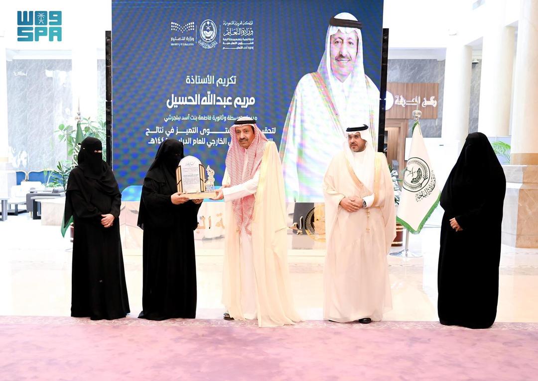 كما كرم أمير منطقة الباحة مديرة مدرسة متوسطة وثانوية فاطمة بنت أسد ببلجرشي مريم بنت عبدالله الغامدي ومنسوبات المدرسة لحصولها على جائزة التميز المدرسي على مستوى مدارس المملكة.