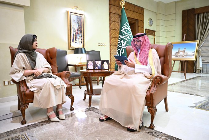 استقبل صاحب السمو الأمير سعود بن عبدالله بن جلوي محافظ جدة بمكتبه اليوم، المدير التنفيذي لجمعية وسم للتصلُّب المتعدِّد هبه سيحان الزهراني .