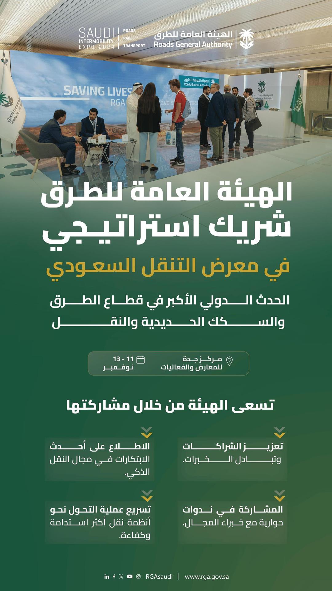 تُشارك الهيئة العامة للطرق راعيًا إستراتيجيًّا لمعرض التنقل السعودي، الذي سيقام في مركز جدة للمعارض والمؤتمرات برعاية معالي الرئيس التنفيذي للهيئة العامة للطرق المكلف المهندس بدر الدلامي، الذي تنطلق أعماله غدًا حتى 13 نوفمبر 2024م.