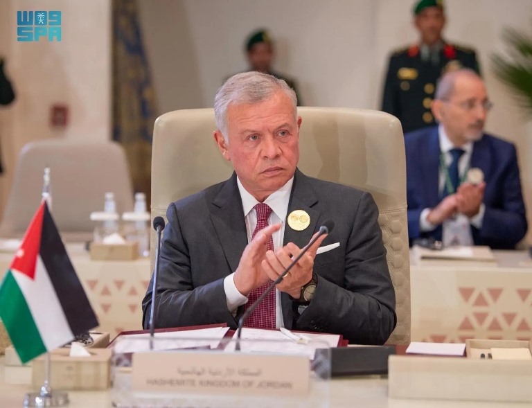 وقدم ملك الأردن شكره للمملكة العربية السعودية على جهودها في تنظيم هذه القمة التي تنعقد والمنطقة تعيش مأساة لا يمكن السكوت عنها وتستدعي تحركا فوريا لوقفها .