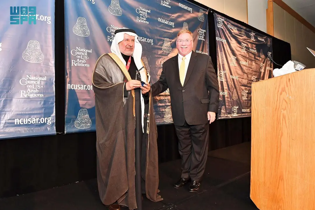 وتسلم الجائزة معالي المستشار بالديوان الملكي المشرف العام على المركز الدكتور عبدالله بن عبدالعزيز الربيعة من المدير التنفيذي للمجلس الوطني للعلاقات الأمريكية العربية ديلانو روزفلت، في العاصمة الأمريكية واشنطن أمس.