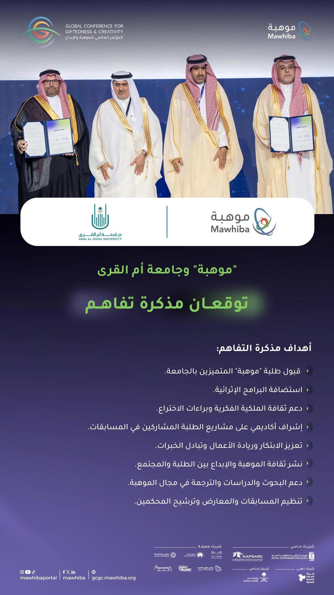 جامعة أم القرى ومؤسسة الملك عبدالعزيز ورجاله للموهبة والإبداع يوقعان مذكرة تفاهم