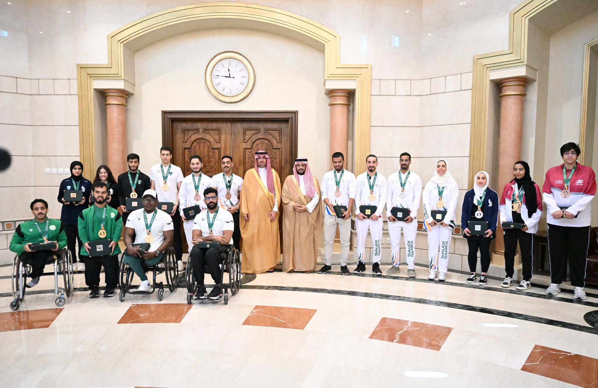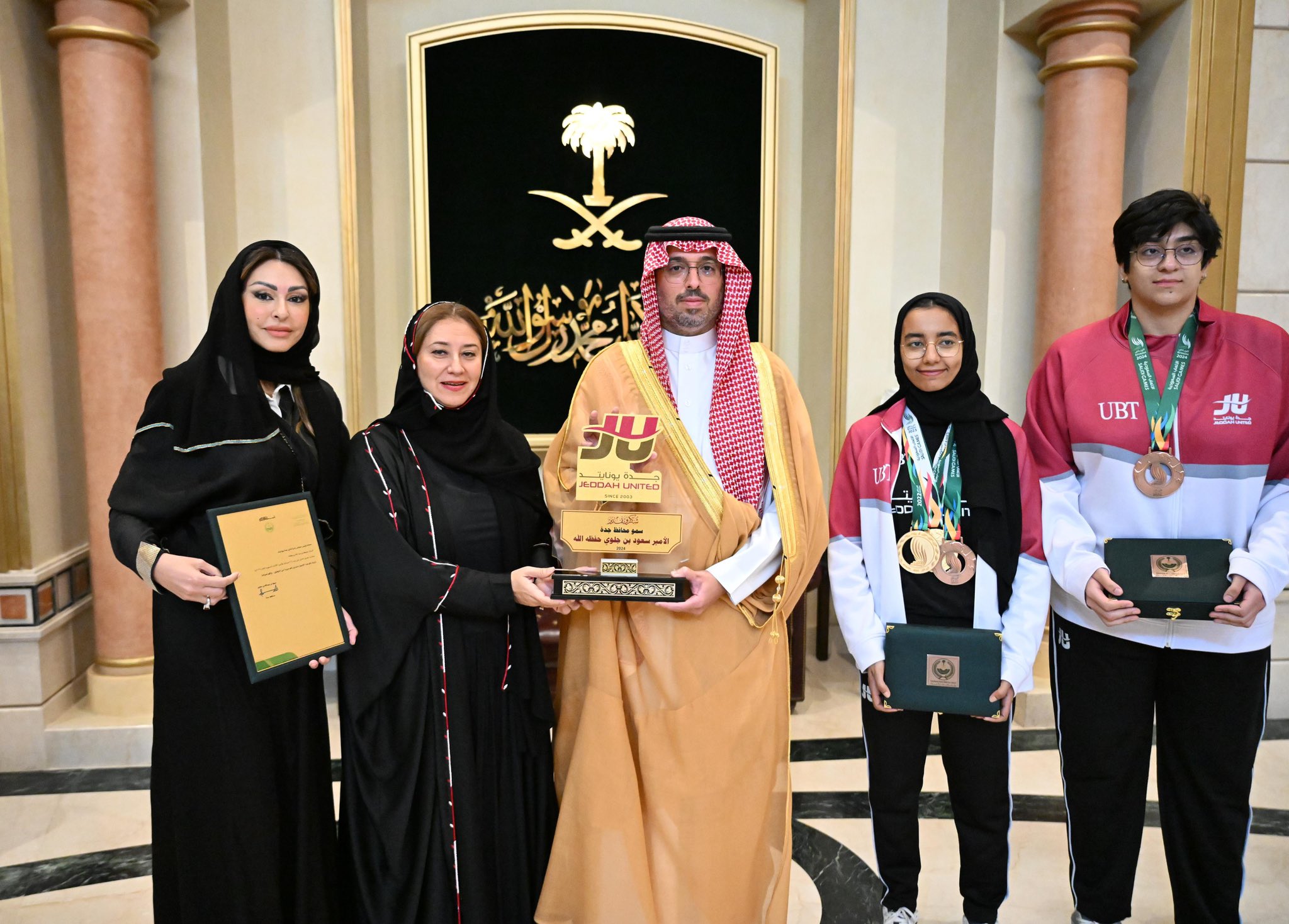 استقبل صاحب السمو الأمير سعود بن عبدالله بن جلوي محافظ جدة, في مقر المحافظة اليوم، الأبطال الفائزين بالميداليات في دورة الألعاب السعودية 2024 من أندية المحافظة المختلفة, بالإضافة إلى جامعة الملك عبدالعزيز واللجنة الأولمبية البارلمبية، بحضور مدير فرع وزارة الرياضة بمنطقة مكة المكرمة عبدالعزيز بن عبود.