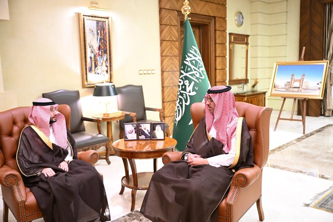 استقبل صاحب السمو الأمير سعود بن عبدالله بن جلوي محافظ جدة، بمقر المحافظة، اليوم، مستشار سمو نائب أمير منطقة مكة المكرمة الأمين العام لوقف الملك عبدالعزيز للعين العزيزية المهندس فارس رجب.