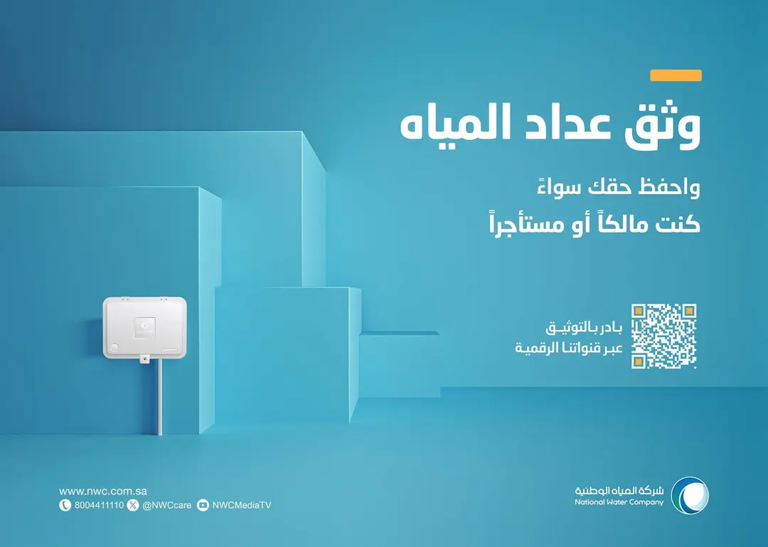 أكدت شركة المياه الوطنية أن مبادرة توثيق عدادات المياه تتميز بضمان ارتباطها بالمستفيد الفعلي سواء كان مالكًا أو مستأجرًا وتحفظ حقوقه، وتساعده على إدارة جميع الخدمات المرتبطة بحسابه، بالإضافة إلى أنها تسهم في استمرارية الخدمات المقدمة إليه، وتمكين الشركة من التواصل المباشر معه، وإرسال الإشعارات المرتبطة بحسابه.