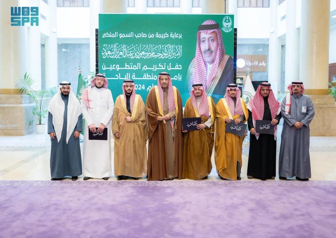 أمير الباحة يكرّم المتطوعين والإدارات المتميزة بمناسبة الإنجازات التطوعية لعام 2024م