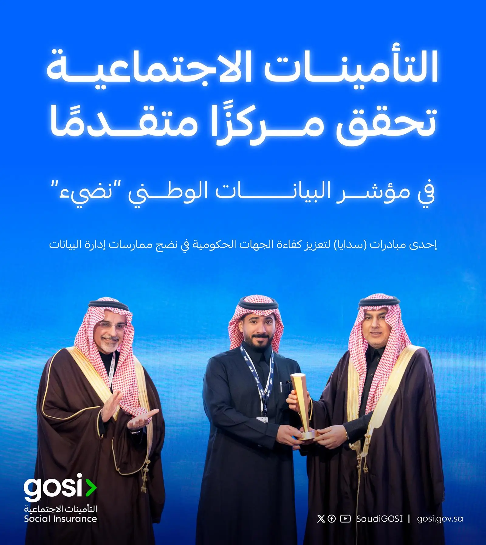 التأمينات الاجتماعية ضمن أفضل الجهات الحكومية في المؤشر الوطني للبيانات “نُضيء”