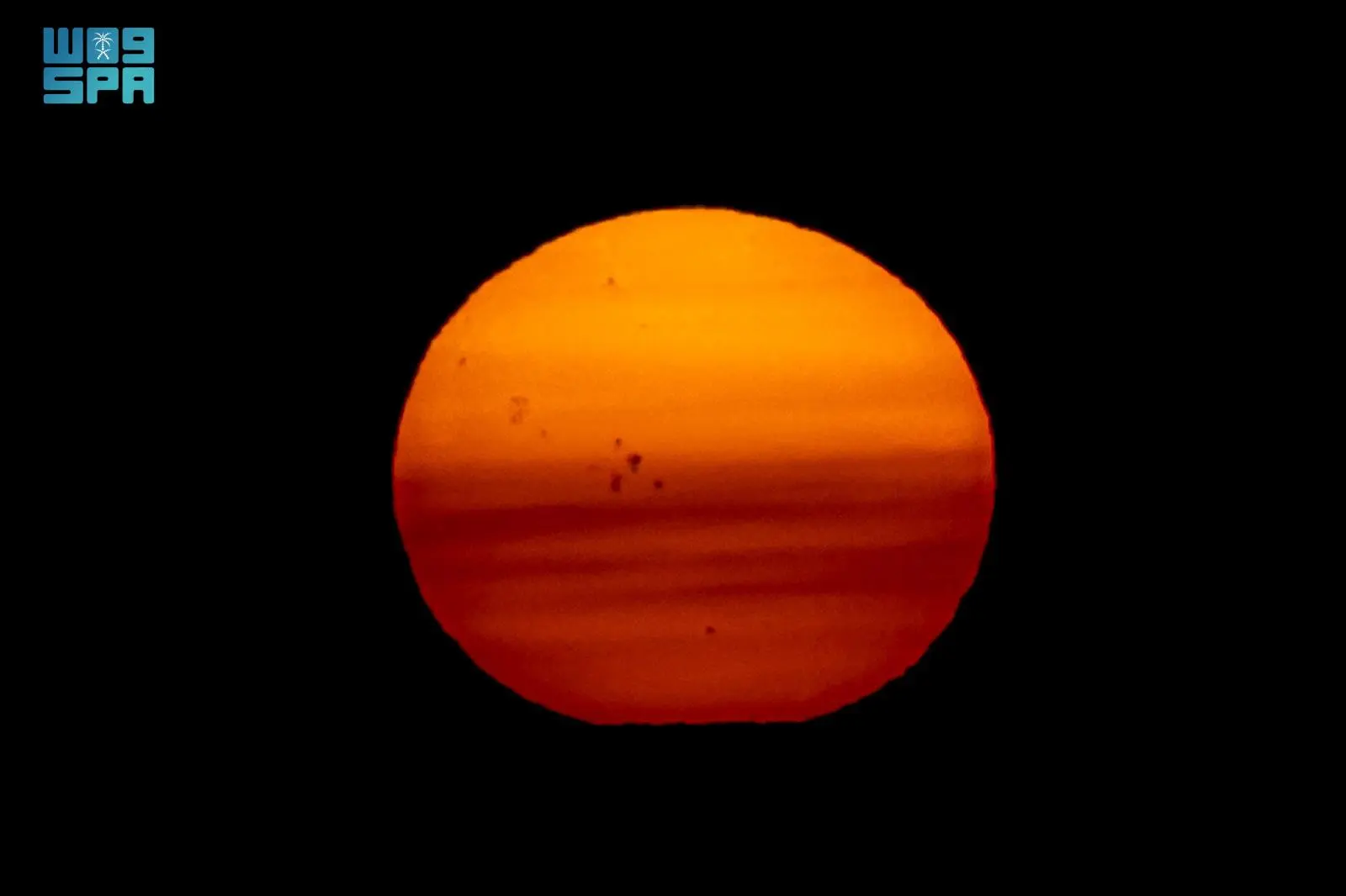 رُصد -اليوم – في سماء مدينة عرعر بمنطقة الحدود الشمالية بقع شمسية ظهرت على قرص الشمس وشوهدت قبل غروب الشمس بدقائق.