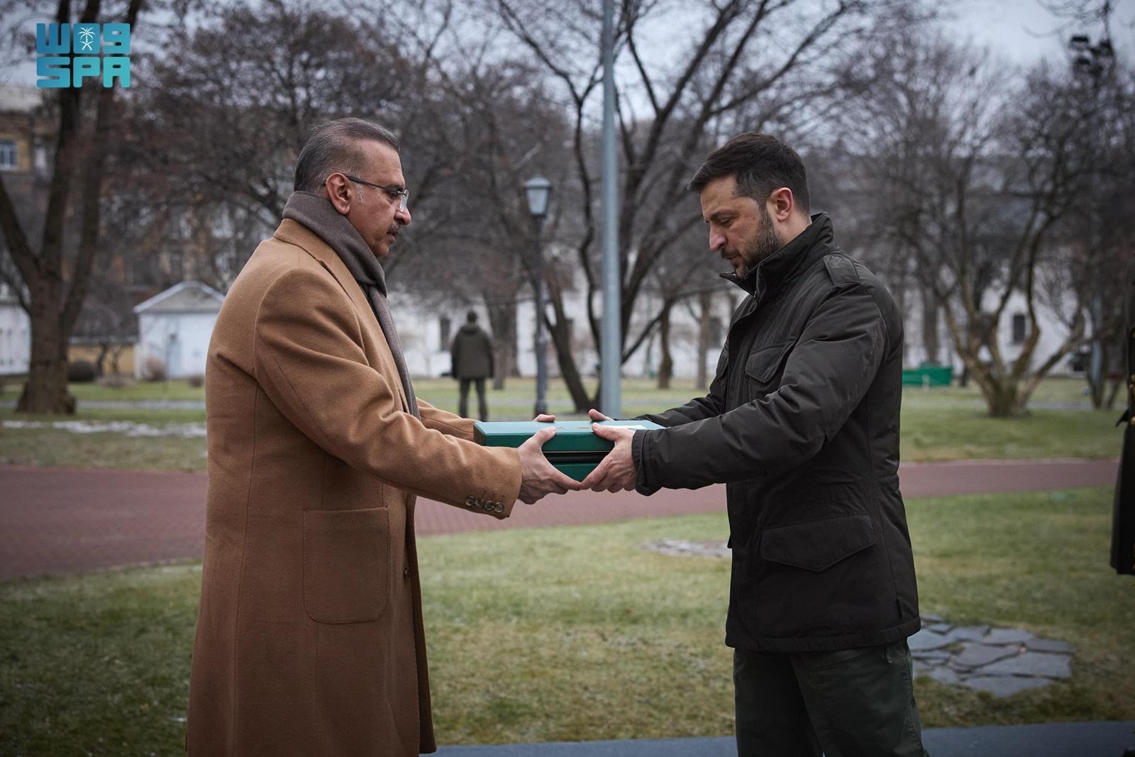 ونقل السفير البركة تحيات خادم الحرمين الشريفين الملك سلمان بن عبدالعزيز آل سعود، وصاحب السمو الملكي الأمير محمد بن سلمان بن عبدالعزيز آل سعود ولي العهد رئيس مجلس الوزراء – حفظهما الله – لفخامته، وتمنياتهما للشعب الأوكراني بالمزيد من التقدم والازدهار.