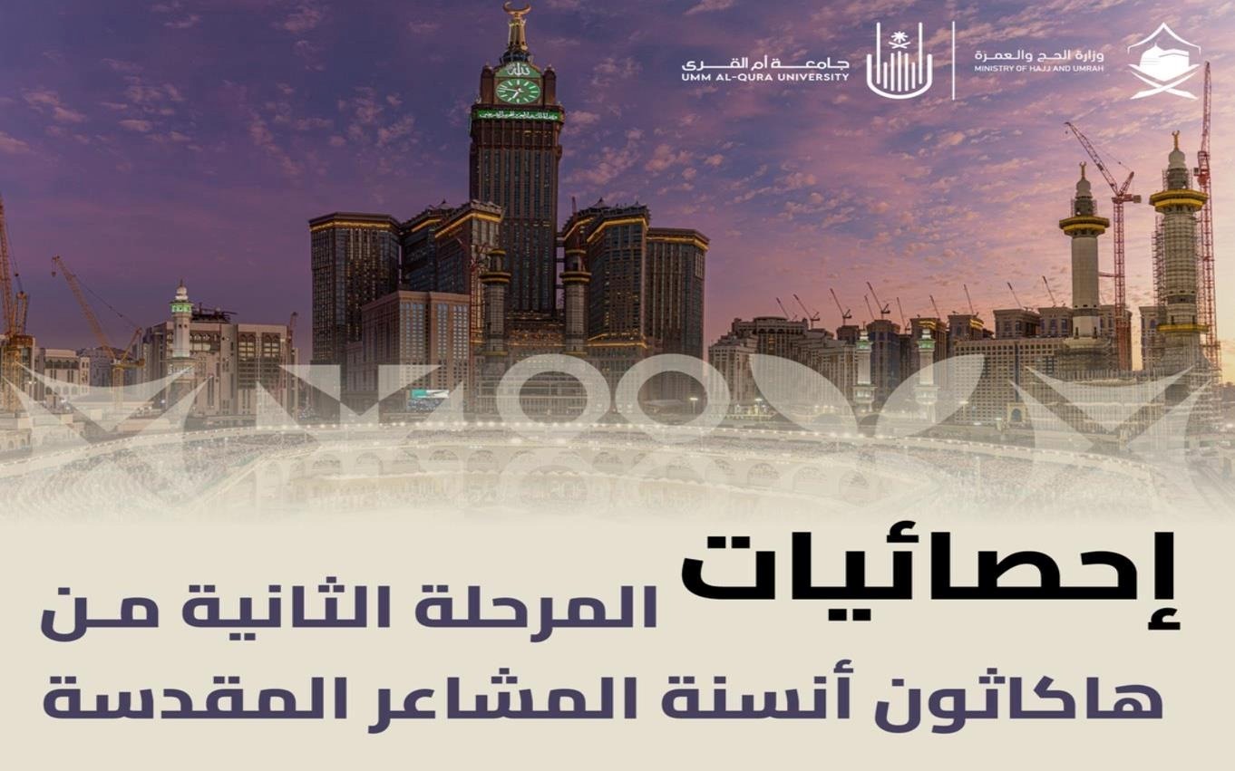 يتنافس ضمن المرحلة الثانية في هاكثون أنسنة المشاعر المقدسة؛ الذي أطلقت فعالياته جامعة أم القرى، ممثلة في معهد البحوث والدراسات والخدمات الاستشارية بالتعاون مع وزارة الحج والعمرة, 753 متسابقًا حيث بلغ عدد المقبولين مبدئيًا ” 525 ” منهم ” 278 مسجلًا في المسار التقني و 143 ” مسجلًا في المسار المعماري فيما بلغ عدد المسجلين في مسار التوعية والإرشاد ” 104 ” من 23 مدينة من مدن المملكة.