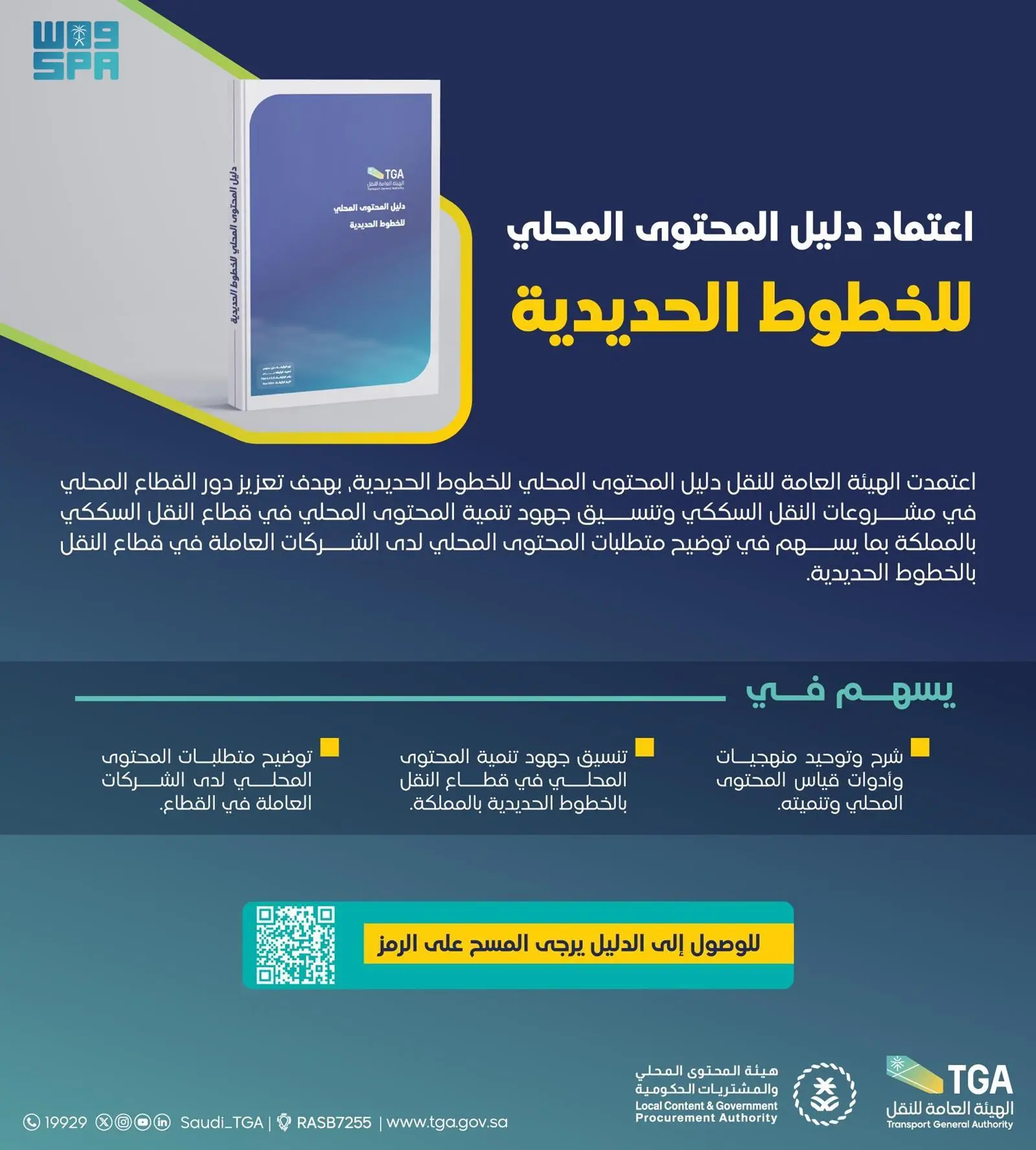 ويمثل هذا الدليل أداة مرجعية تسهم في تنسيق الجهود بين الأطراف المعنية في القطاع، وتعزز دور النقل السككي كركيزة أساسية للتنمية المستدامة، ورافدًا مهمًا لزيادة الاعتماد على الموارد الوطنية وربط المملكة بالأسواق الإقليمية والعالمية.