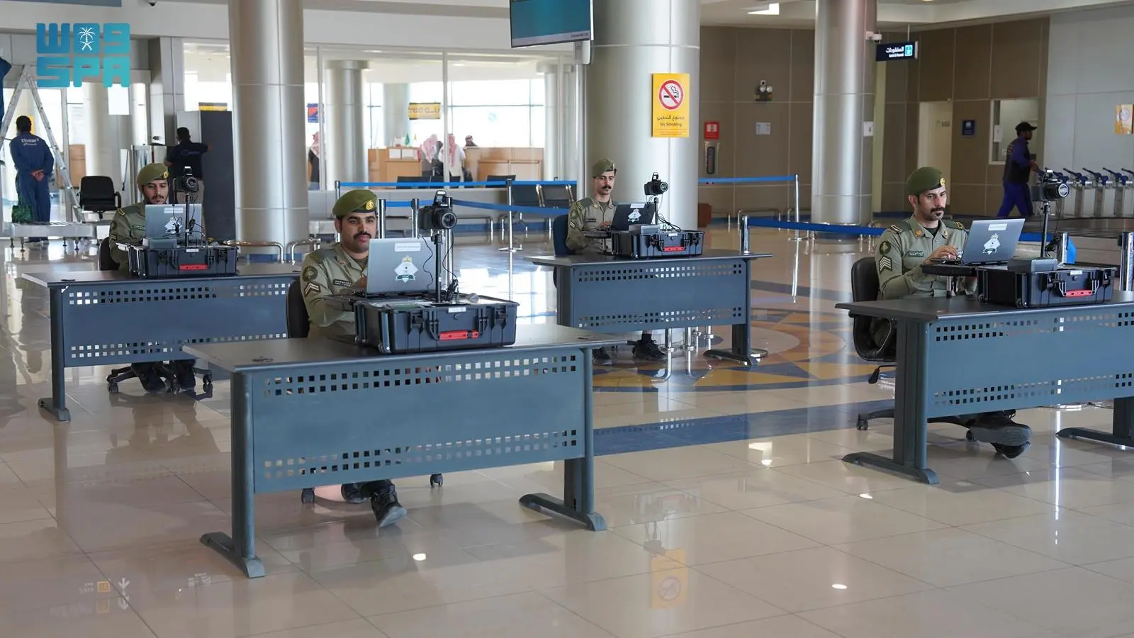 وأوضحت “الجوازات” أن أعمال التجهيز تضمنت تطوير صالة الرحلات الداخلية بالمطار لتكون مؤهلة لاستقبال الرحلات الدولية، من خلال تزويدها بأحدث الأنظمة التقنية، مثل أجهزة الكاونتر المتنقلة والحقائب التقنية المتطورة التي تُستخدم في إنهاء إجراءات المسافرين، بكوادر بشرية مؤهلة لتقديم خدمات عالية الجودة للمشاركين، تسهم في انسيابية العمليات وسرعة الإنجاز.