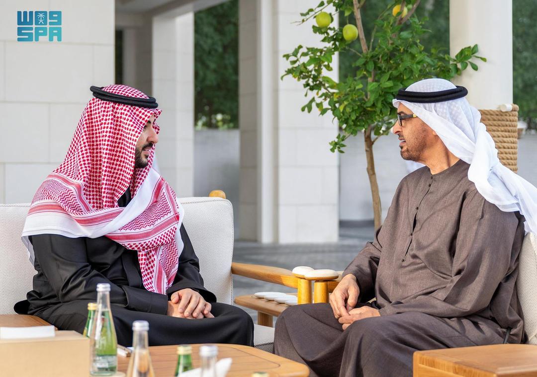 بتوجيه من القيادة -أيدها الله- التقى صاحب السمو الملكي الأمير خالد بن سلمان بن عبدالعزيز وزير الدفاع، في قصر الشاطئ بالعاصمة الإماراتية أبوظبي اليوم، صاحب السمو الشيخ محمد بن زايد آل نهيان رئيس دولة الإمارات العربية المتحدة، بحضور سمو الشيخ منصور بن زايد آل نهيان نائب رئيس الدولة نائب رئيس مجلس الوزراء رئيس ديوان الرئاسة في دولة الإمارات العربية المتحدة.