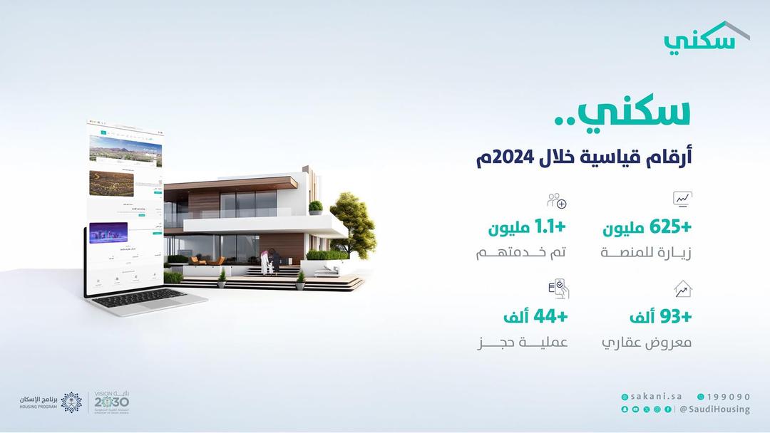 استقبلت منصة “سكني” خلال 2024 أكثر من 625 مليون زيارة رقمية للمنصة؛ بزيادة تجاوزت 24% مقارنة بـ 2023، وذلك بعد عمليات التطوير وضخّ معروض عقاري في المنصة تجاوز 93 ألف وحدة، تميزت بتنوع مواصفاتها وتعدد مواقعها في مختلف مناطق ومدن المملكة، كما سُجل من خلال جميع القنوات التابعة لسكني ما يزيد عن 1.1 مليون خدمة مقدمة لمستخدمي المنصة.