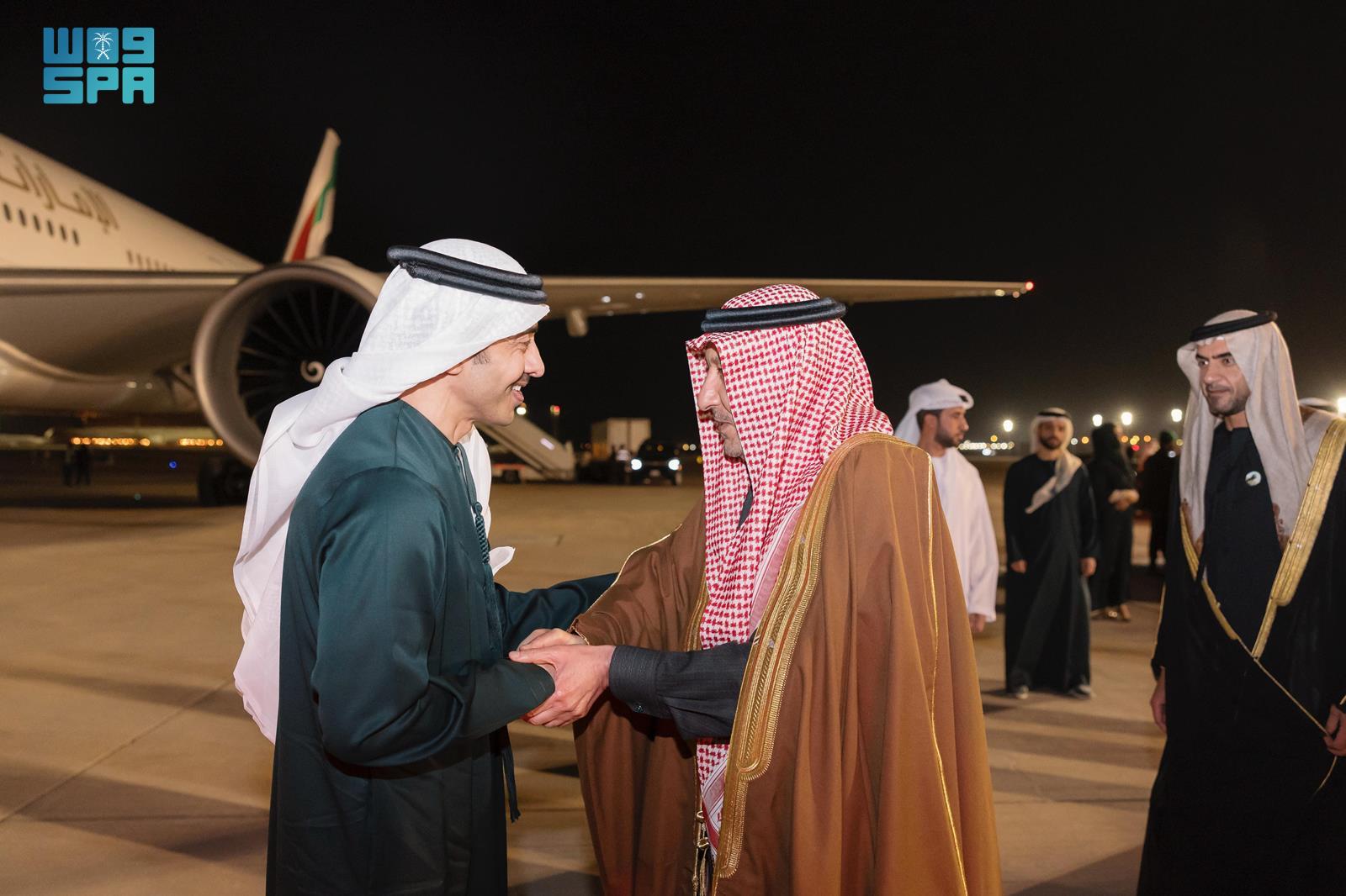 نائب رئيس مجلس الوزراء وزير خارجية دولة الإمارات يصل إلى الرياض