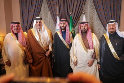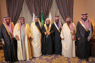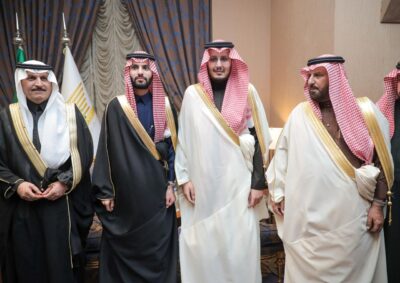 جاء ذلك بحضور نخبة من أصحاب السمو الملكي، والعلماء والقضاة والمستشارين، بجانب عدد من أعضاء مجلس الشورى والمحافظين وأصحاب السعادة وعدد من رجال الدولة من مدنيين وعسكريين ومشايخ القبائل ورجال الأعمال، الذين قدموا التهاني والتبريكات للمستشار “القرني” وأسرتي العروسين.