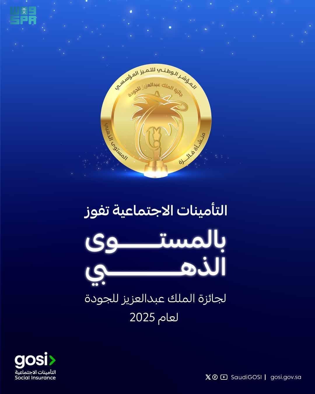 حققت التأمينات الاجتماعية إنجازًا جديدًا يُضاف إلى سجل نجاحاتها، بفوزها بالمستوى الذهبي في جائزة الملك عبد العزيز للجودة 2025 في دورتها السابعة، ويعكس هذا الفوز المستوى المتميز والمكانة الرائدة للتأمينات الاجتماعية بين جميع الجهات والمنشآت الحكومية التي تنافست على الجائزة.