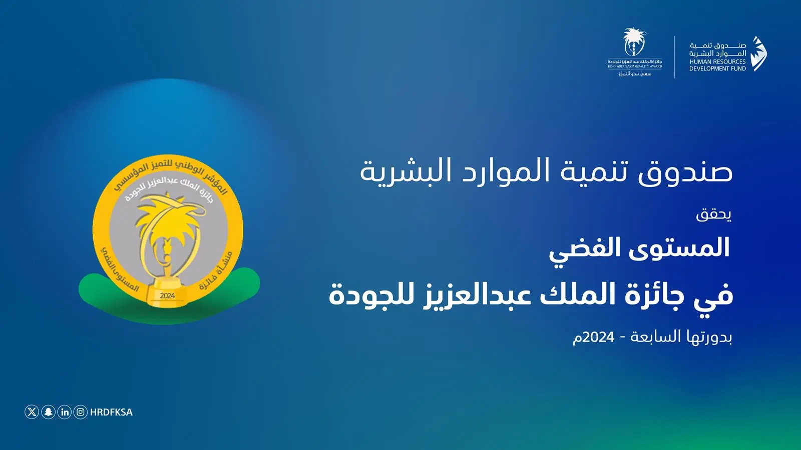 صندوق تنمية الموارد البشرية يحصد "المستوى الفضي" في جائزة الملك عبدالعزيز للجودة بدورتها السابعة