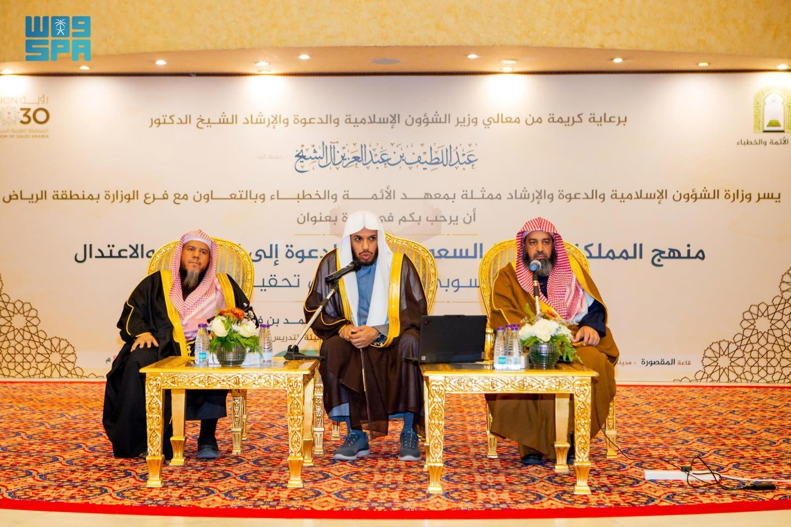 نظّمت وزارة الشؤون الإسلامية والدعوة والإرشاد ممثلة بمعهد الأئمة والخطباء أمس، ندوة علمية بحضور أكثر من 27 ألف من منسوبي المساجد بمنطقة الرياض عن” منهج المملكة في الدعوة إلى الوسطية والاعتدال ودور منسوبي المساجد في تحقيقه”.