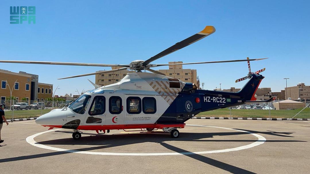 باشر الإسعاف الجوي في هيئة الهلال الأحمر السعودي بمنطقة القصيم , حادث انقلاب مركبة بداخلها شخصان أحدهما محتجز بمنطقة العوشزية قرب محافظة عنيزة جنوب القصيم، وبالتنسيق مع الجهات المعنية بتأمين مكان آمن للهبوط وذلك لبعد وصعوبة وصول سيارات الإسعاف لموقع الحالة لكون الموقع داخل وحل طيني (ملح) بعد ما شهدت المنطقة حالة مطرية واسعة.