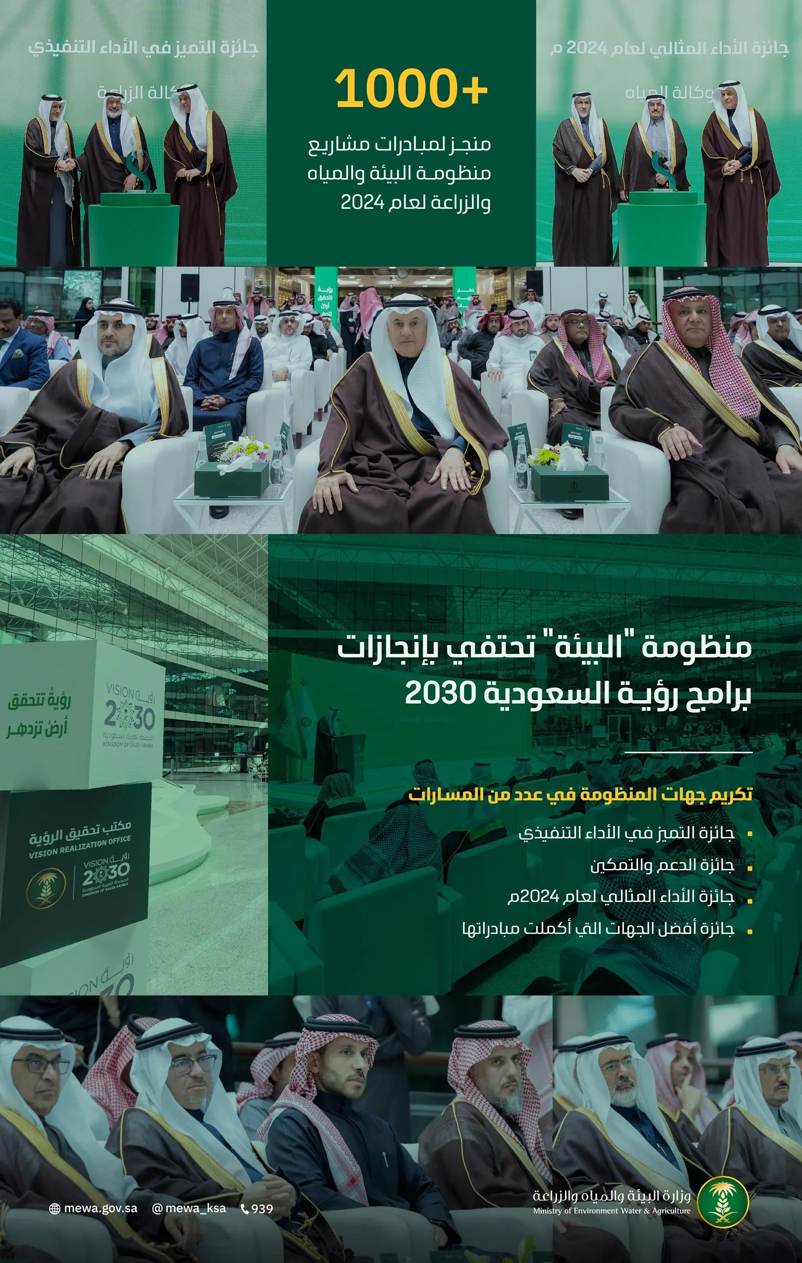 احتفت وزارة البيئة والمياه والزراعة، بتحقيق قطاعات المنظومة إنجازاتٍ قياسية، ونتائج مرتفعة، ضمن مبادرات ومشاريع برامج رؤية المملكة 2030، وذلك من خلال ارتفاع مؤشرات أدائها، وتمكنها من تجاوز التحديات؛ مما عكس التزامها بتحقيق الإستراتيجيات والخطط المعتمدة، خلال العام الماضي 2024م.