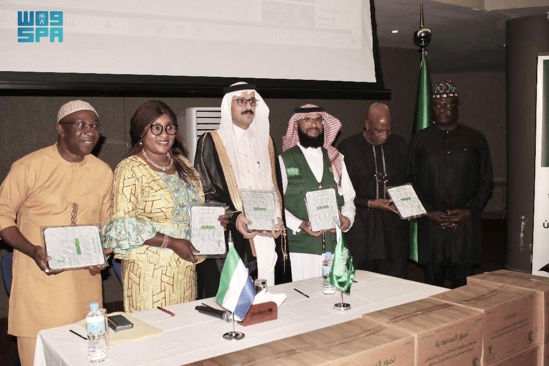 وسلم المساعدات – نيابة عن المركز – القائم بالأعمال بالإنابة لسفارة المملكة العربية السعودية في سيراليون علي بن إبراهيم الحجي للجانب السيراليوني، بحضور فريق المركز، وذلك في العاصمة فريتاون.