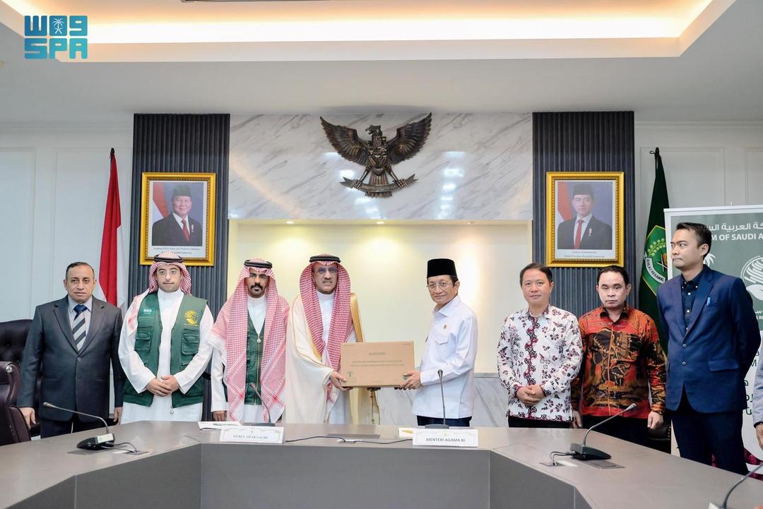 قام بتسليم المساعدات – نيابة عن المركز – سفير خادم الحرمين الشريفين لدى جمهورية إندونيسيا فيصل بن عبدالله العامودي لمعالي وزير الشؤون الدينية الدكتور نصر الدين عمر، بحضور عدد من المسؤولين، وجمع من وسائل الإعلام، وفريق من المركز.
