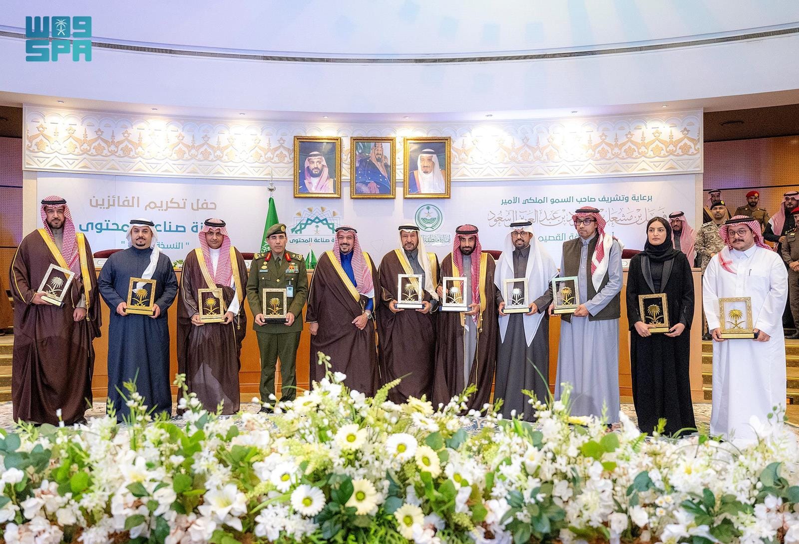 أمير القصيم يكرّم 24 فائزًا وفائزة من الجهات والأفراد بجائزة صناعة المحتوى في نسختها الرابعة