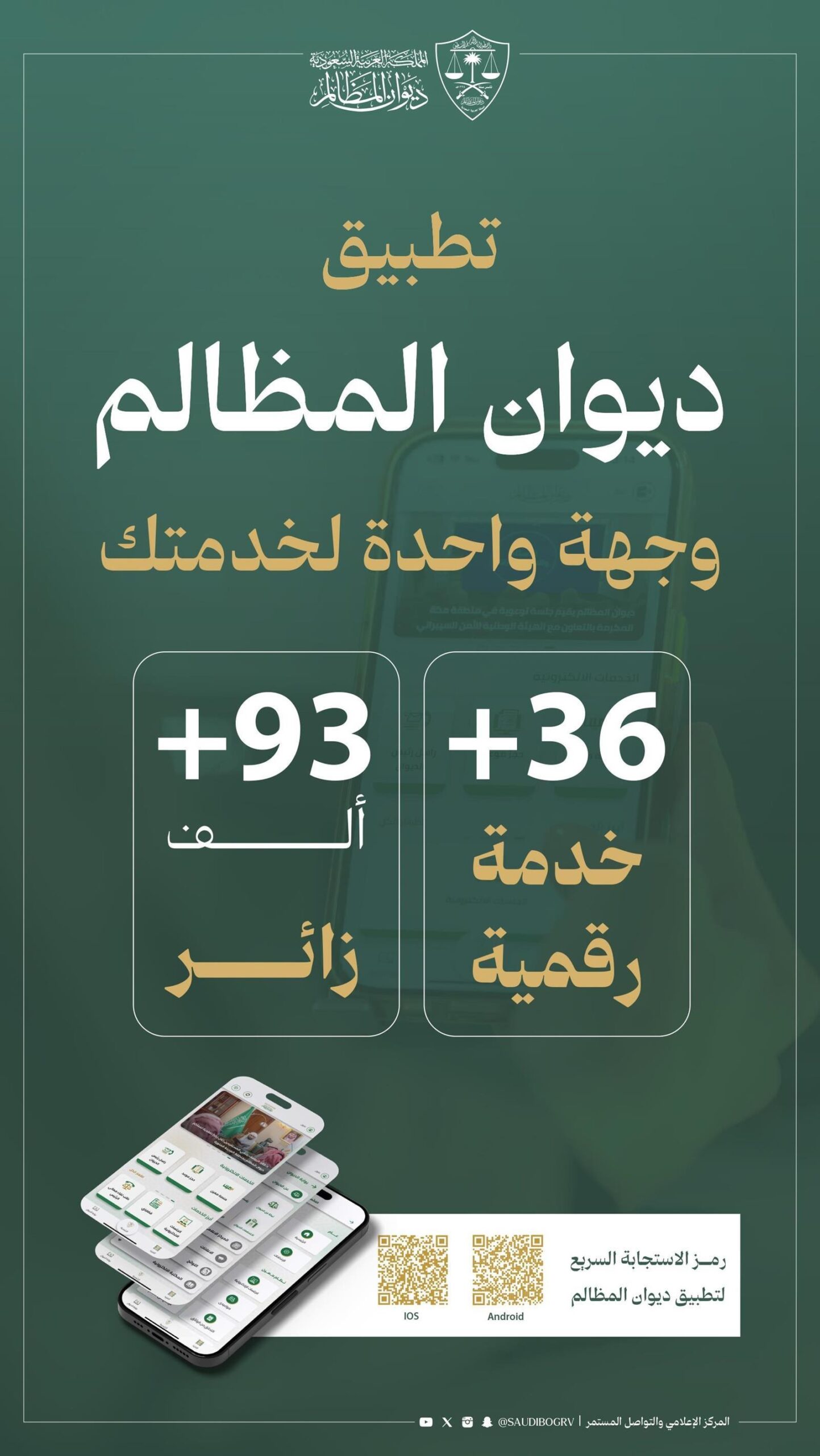 أعلن ديوان المظالم، أن عدد الزيارات لتطبيق الديوان للأجهزة الذكية بلغت 93.522 زيارة منذ إطلاقه وإصدار النسخة المطورة من التطبيق بداية الربع الثالث من العام الماضي 2024م، حيث يشكل التطبيق أحد أهم وأيسر مسارات الوصول إلى منصات القضاء الإداري الرقمية.