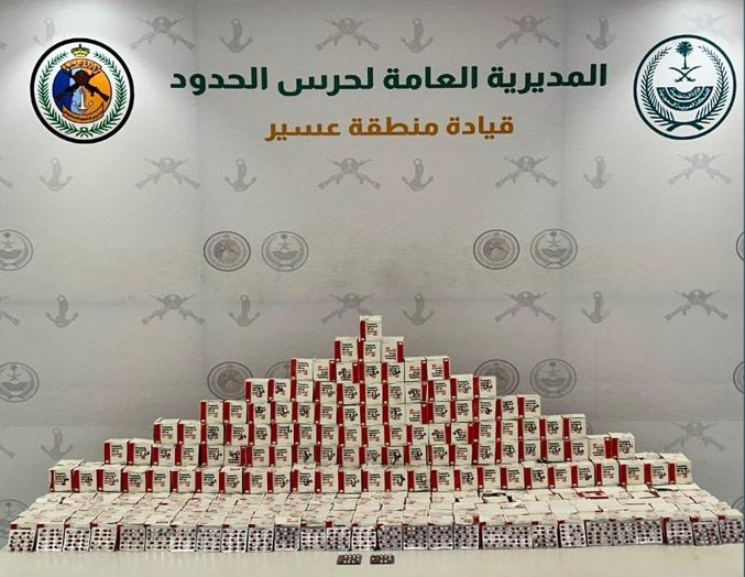 أحبطت الدوريات البرية لحرس الحدود في قطاع الربوعة بمنطقة عسير تهريب (49,350) قرصًا خاضعًا لتنظيم التداول الطبي، وجرى استكمال الإجراءات النظامية الأولية, وتسليم المضبوطات لجهة الاختصاص.