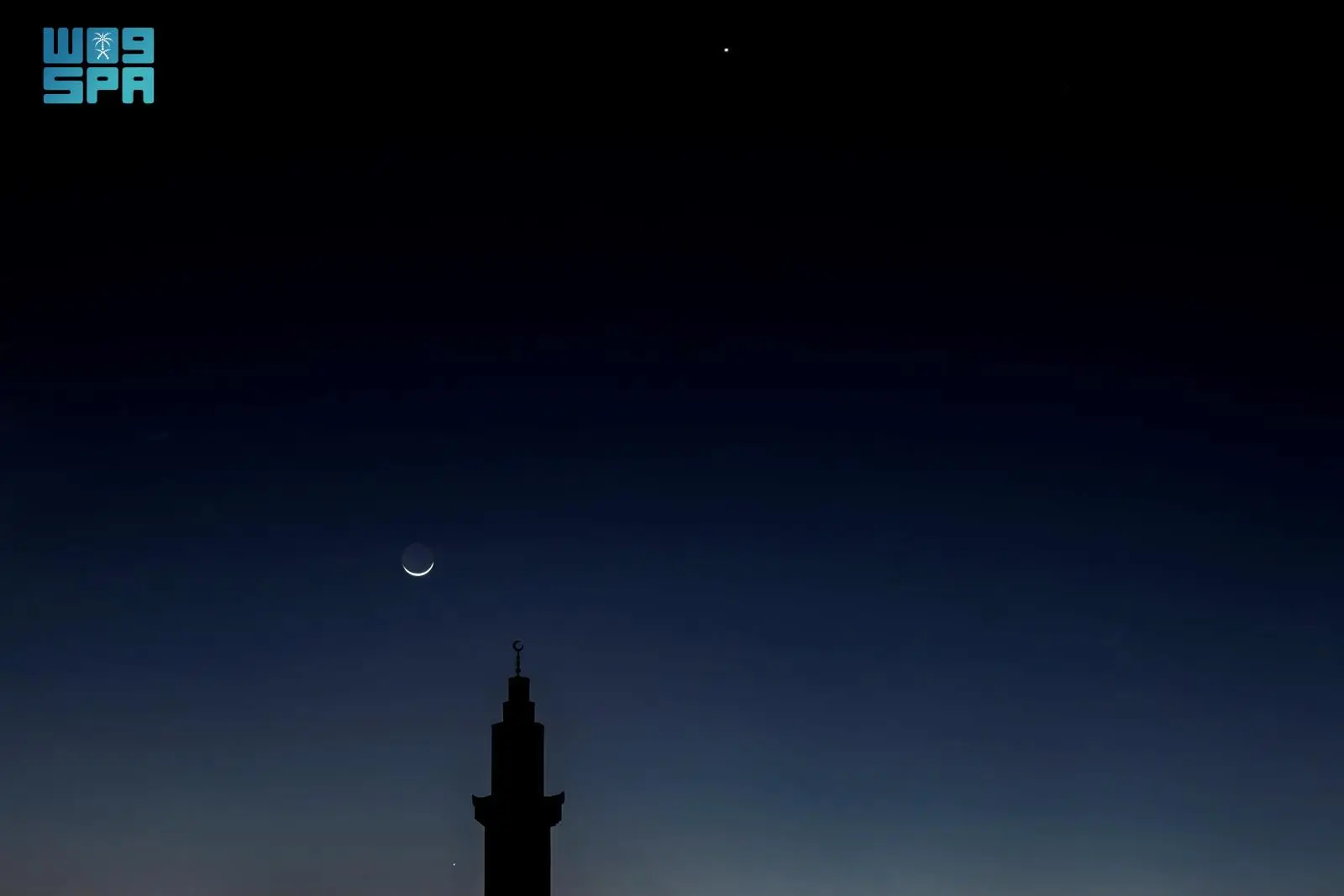 هلال ليلة الثاني من رمضان يتألق في سماء عرعر تحت كوكب الزهرة وفوق كوكب عطارد