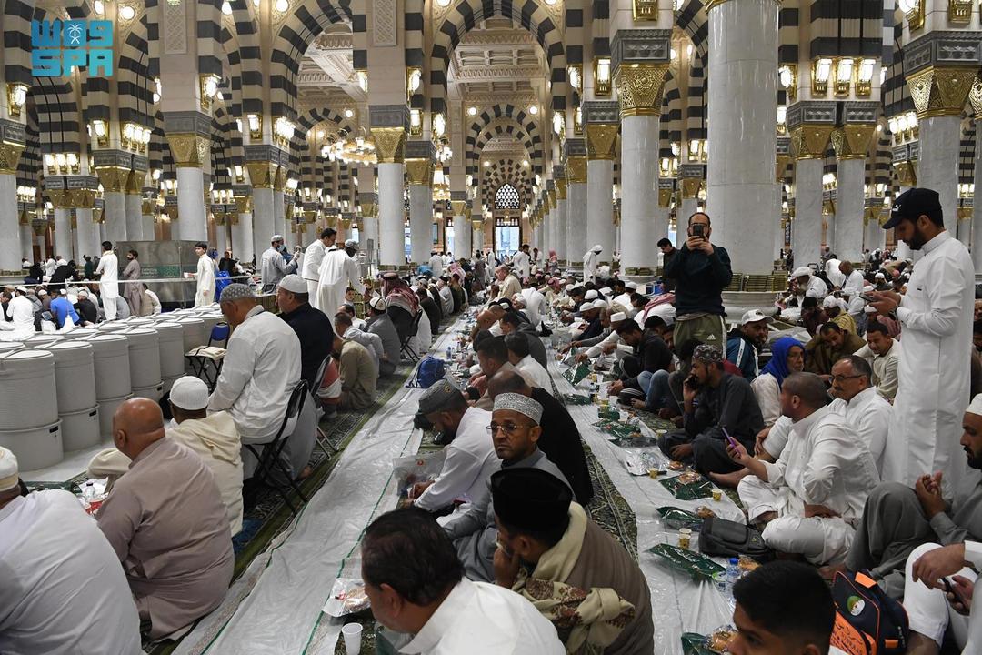 وأعلنت الهيئة اليوم، توزيع 227 ألف وجبة إفطار صائم يوميًا للمصلين والزائرين في المسجد النبوي في جميع أقسام وساحاته وتوسعاته.