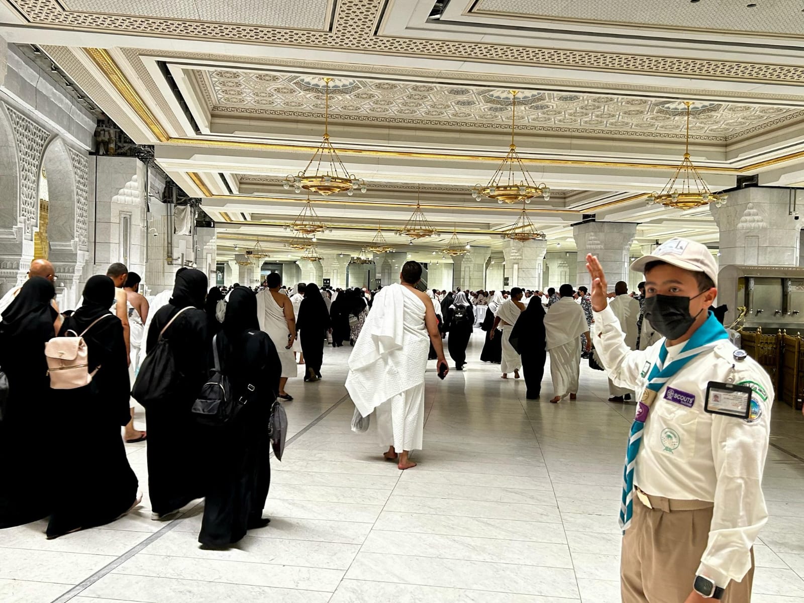 من جهته أوضح مفوض خدمة وتنمية المجتمع بأمانة الجمعية أحمد محمد آل عثوان، أن 295 كشافاً وقائداً يساهمون في تقديم الخدمات بالمسجد الحرام بالتعاون مع الهيئة العامة للعناية بشؤون المسجد الحرام والمسجد النبوي الشريف، والتجمع الصحي بمكة المكرمة، والأمن العام، بإرشاد التائهين وتوجيه المعتمرين إلى وجهاتهم، وتنظيم الحركة وانسيابيتها، والحد من الازدحام، لا سيما في المناطق ذات الكثافة العالية، ودعم المراكز الصحية ومستشفيات أجياد والحرم، من خلال توجيه المرضى، وتقديم الدعم للفرق الطبية في حالات الطوارئ.