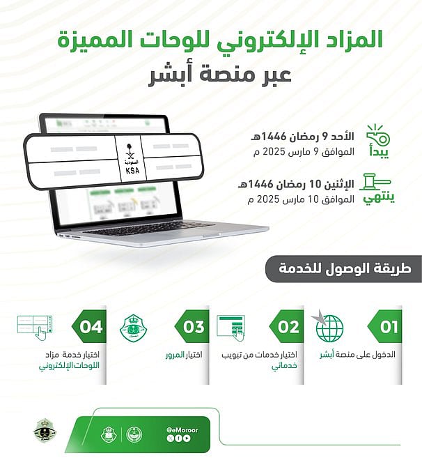 آخر الأخبار > المرور: مزاد إلكتروني للوحات المميزة مستمر حتى 10 مارس > sabq_2025-03-09_o7ijutgf_GlhSm5fWIAEOJg5
