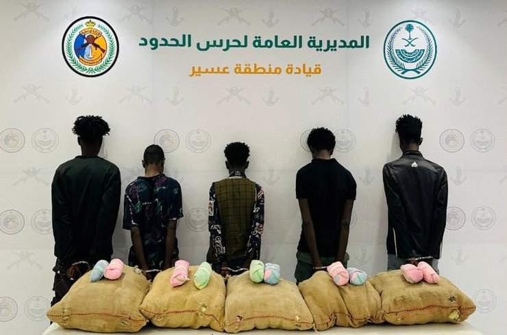 قبضت الدوريات البرية لحرس الحدود في قطاع الربوعة بمنطقة عسير على (5) مخالفين لنظام أمن الحدود من الجنسية الإثيوبية، لتهريبهم (100) كيلوجرام من نبات القات، وجرى استكمال الإجراءات النظامية الأولية بحقهم، وتسليمهم والمضبوطات لجهة الاختصاص.