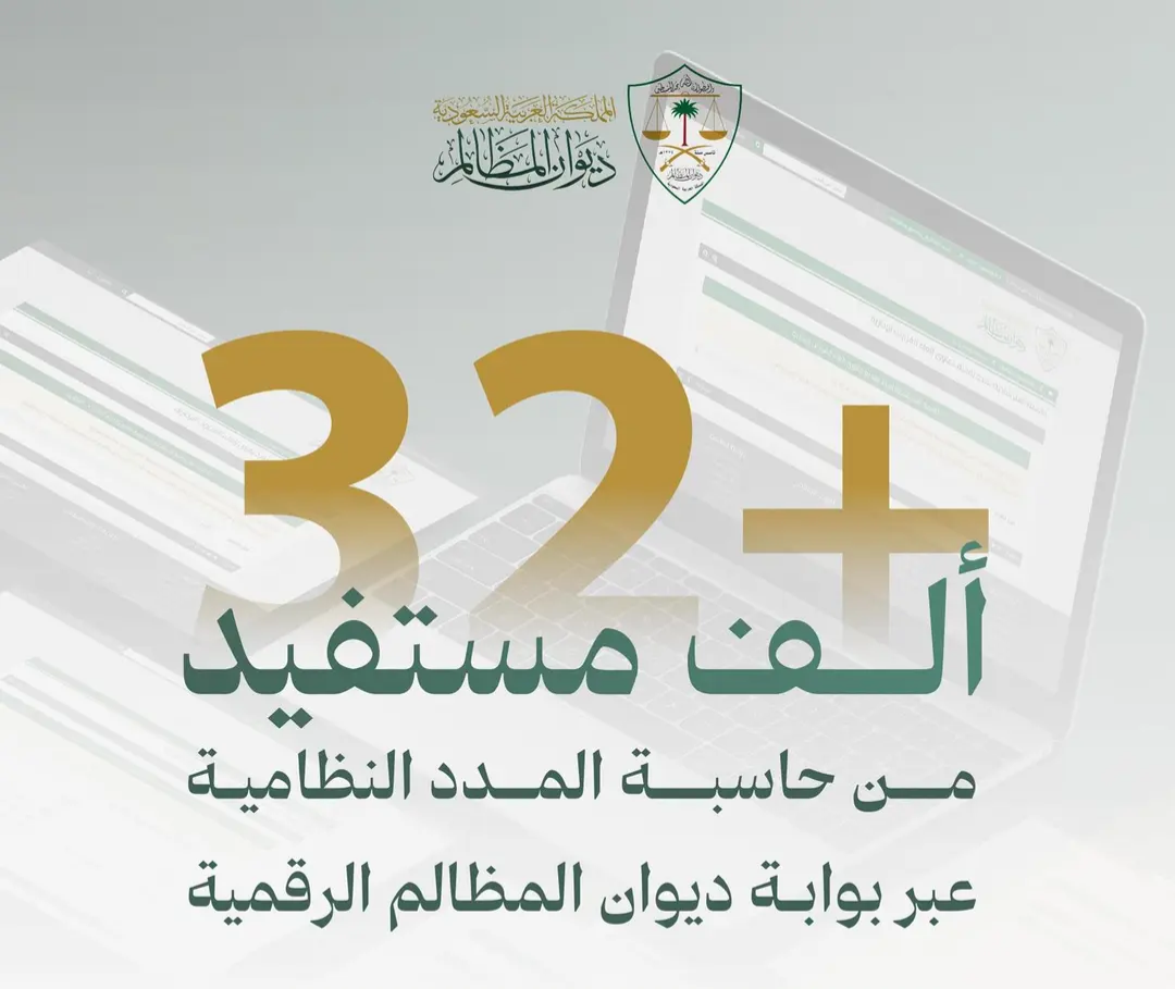 كشف ديوان المظالم، أن عدد المستفيدين من خدمة حاسبة المدد النظامية عبر بوابته الرقمية بلغ 32,375 مستفيدًا منذ إطلاق الخدمة في بداية الربع الثالث من عام 2021م.