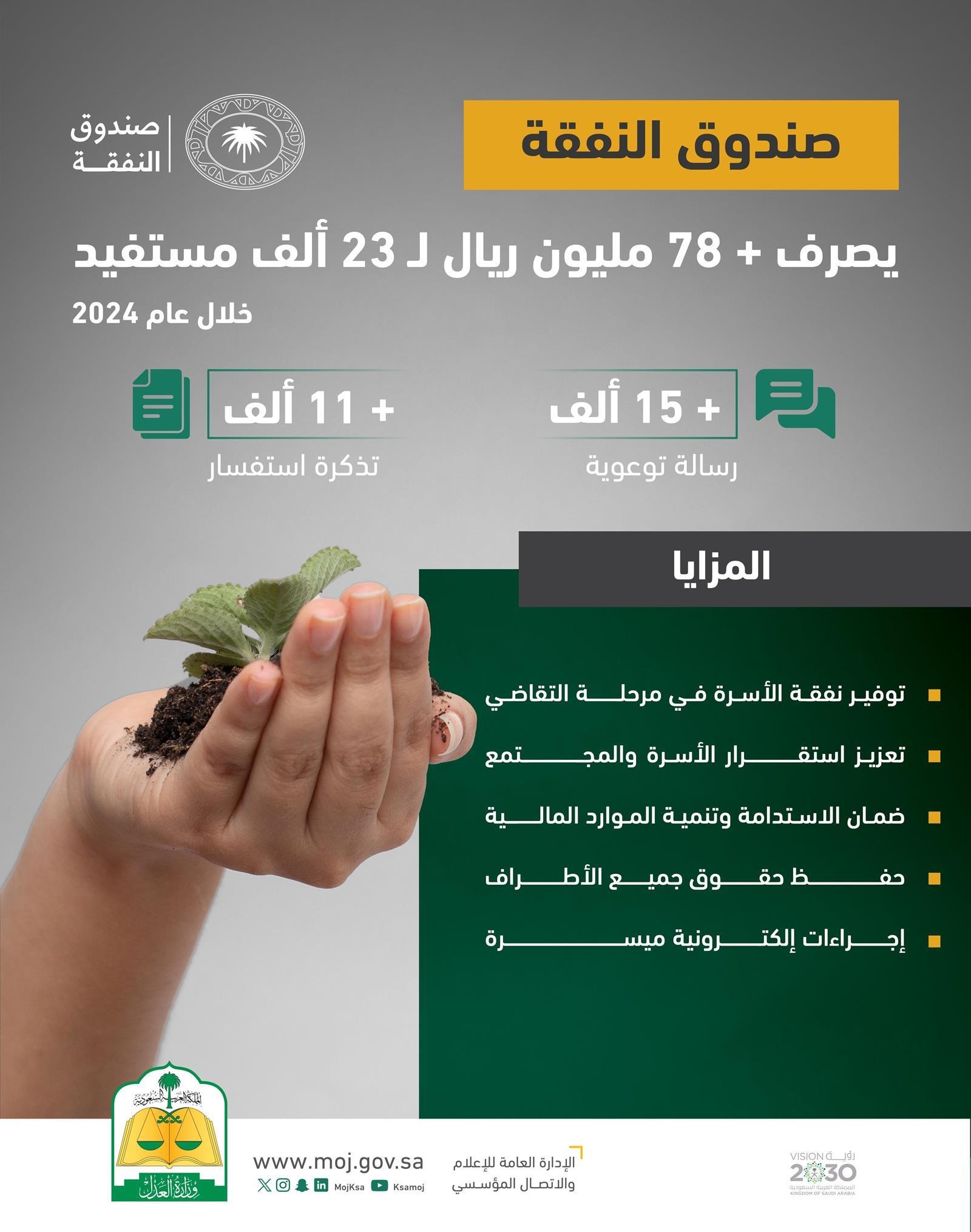 وزارة العدل: صندوق النفقة يصرف 78 مليون ريال لـ 23 ألف مستفيد