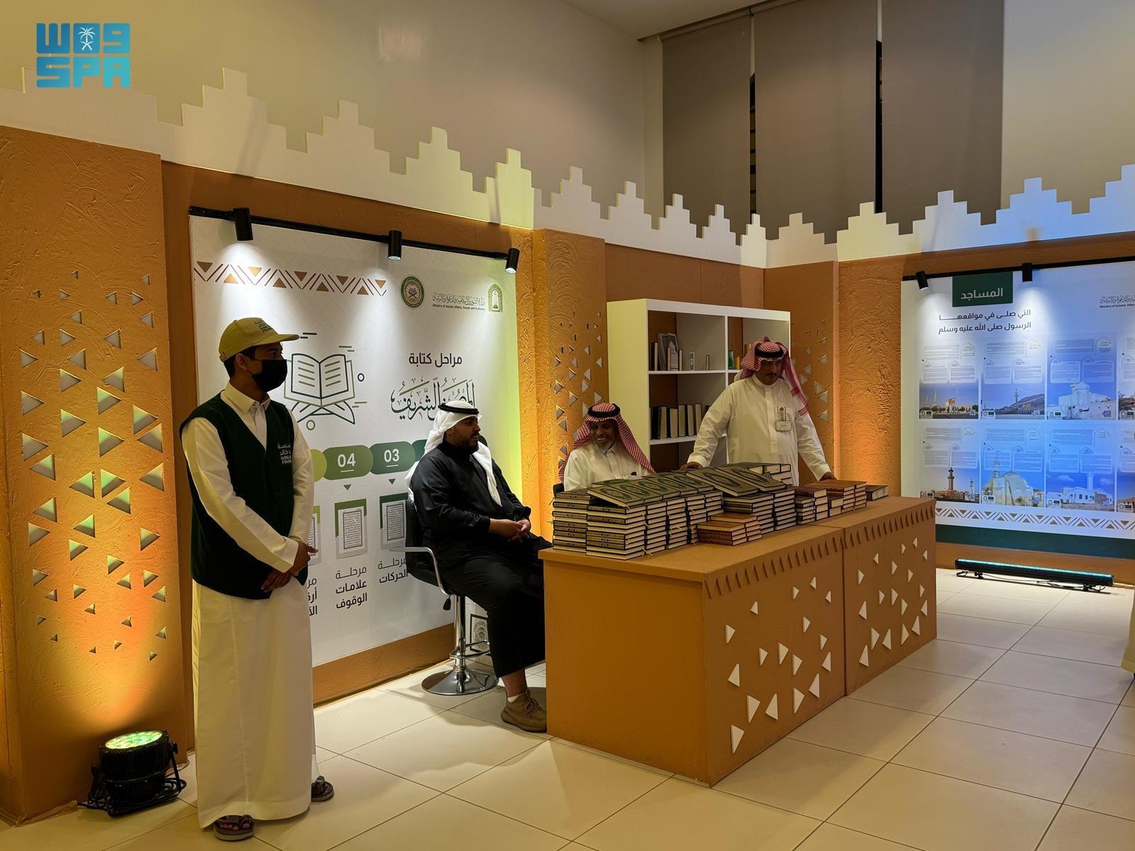كما سلط الجناح الضوء على مراحل كتابة المصحف الشريف، حيث يتم التدقيق والمراجعة من قبل اللجنة العلمية بإشراف فضيلة الشيخ علي الحذيفي إمام وخطيب المسجد النبوي الشريف، لضمان الدقة في كل مرحلة.