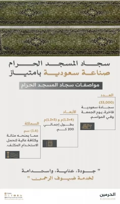 يتميز سجاد المسجد الحرام بجودته الفائقة وصناعته الفاخرة ومواصفات الاستدامة.
