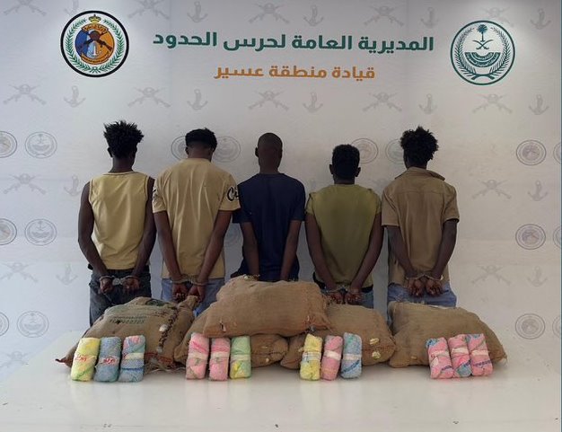 قبضت الدوريات البرية لحرس الحدود في قطاع الربوعة بمنطقة عسير على (5) مخالفين لنظام أمن الحدود من الجنسية الإثيوبية، لتهريبهم (100) كيلوجرامٍ من نبات القات، وجرى استكمال الإجراءات النظامية الأولية بحقهم، وتسليمهم والمضبوطات لجهة الاختصاص.