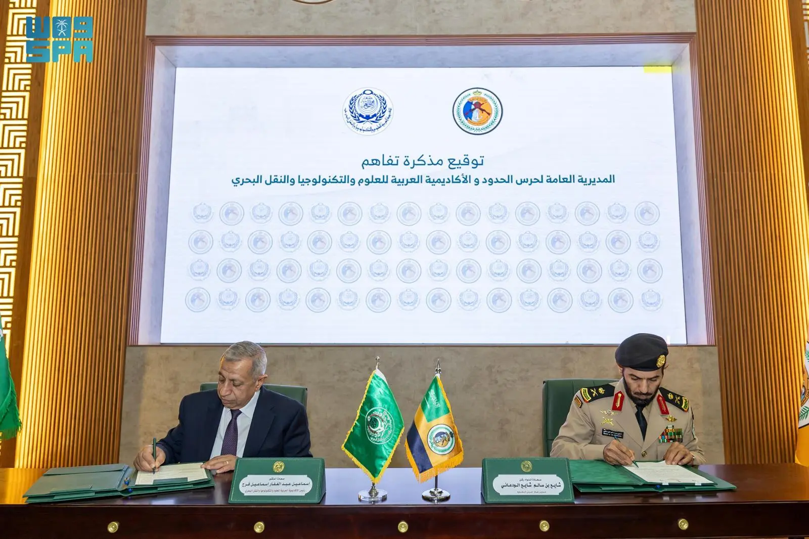 وقعت المديرية العامة لحرس الحدود ممثلة في أكاديمية وزارة الداخلية لأمن الحدود مع الأكاديمية العربية للعلوم والتكنولوجيا والنقل البحري بجامعة الدول العربية بجمهورية مصر العربية، اليوم، مذكرة تفاهم لتعزيز الشراكات الإستراتيجية مع الجهات الإقليمية والدولية، بحضور المدير العام لحرس الحدود اللواء الركن شايع بن سالم الودعاني، ورئيس الأكاديمية الدكتور إسماعيل عبدالغفار فرج، وذلك في مقر المديرية بمدينة الرياض.