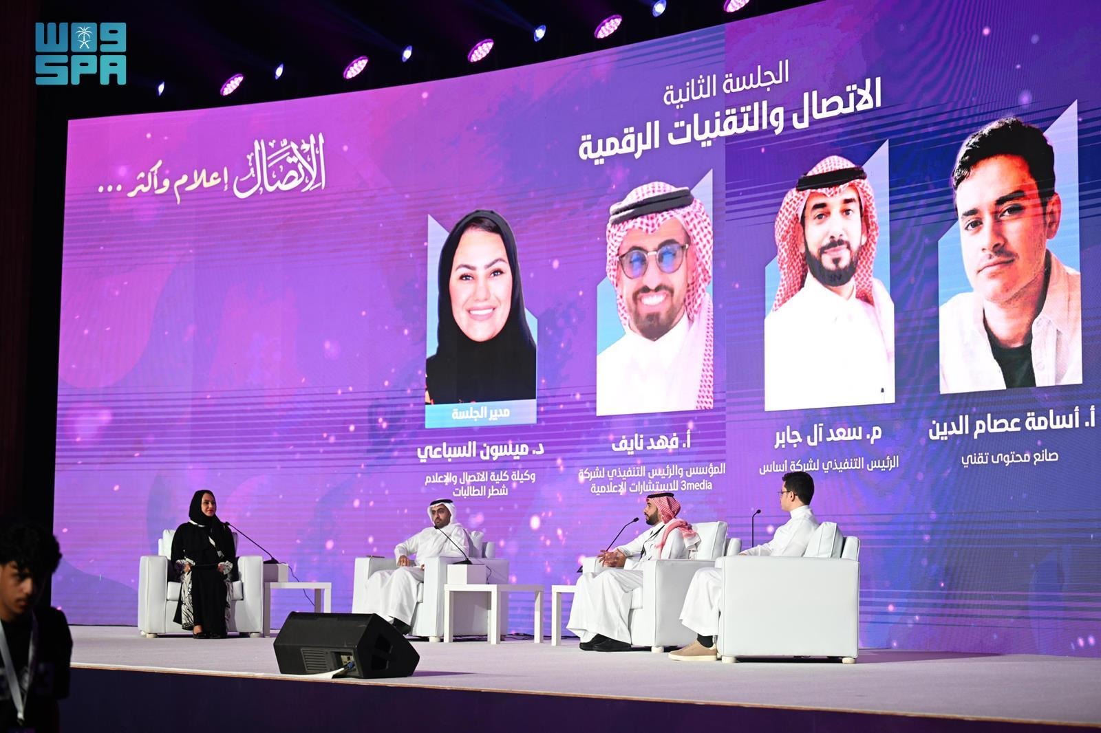 خصص مؤتمر الاتصال الرقمي بجامعة الملك عبدالعزيز جلسته العلمية الثانية لموضوع الاتصال والتقنيات الرقمية؛ بمشاركة صانع المحتوى التقني أسامة عصام الدين، والرئيس التنفيذي لشركة أساس المهندس سعد آل جابر، والمؤسس والرئيس التنفيذي لشركة media 3 للاستشارات الإعلامية، والمدير العام لشركة إيفوكس للتسوق فهد نايف، وأدارتها وكيلة كلية الاتصال والإعلام ميسون السباعي.
