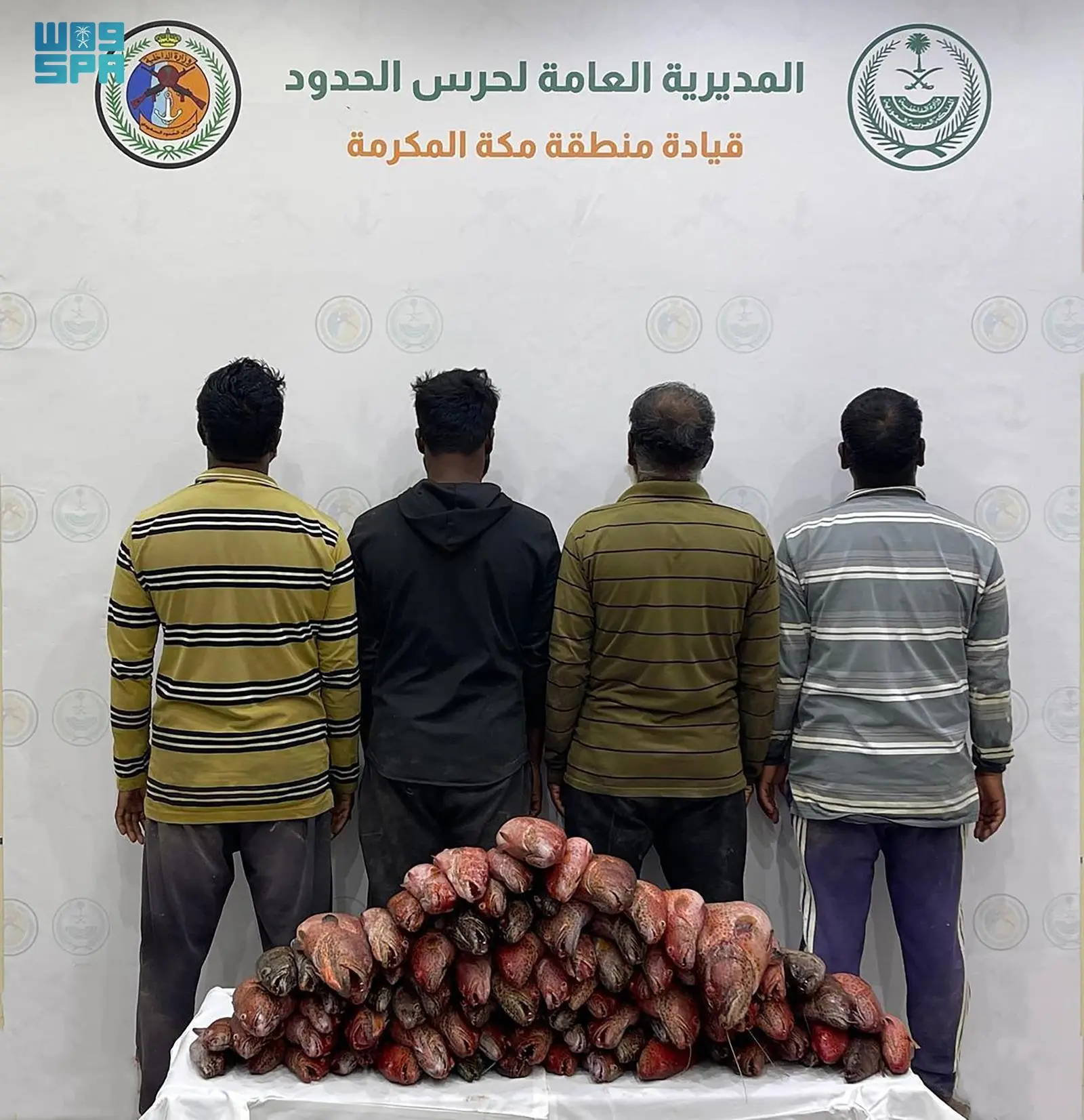 ضبطت الدوريات الساحلية لحرس الحدود بقطاع الليث في منطقة مكة المكرمة (4) مقيمين من الجنسية البنجلاديشية مخالفين للائحة الأمن والسلامة لمزاولي الأنشطة البحرية في المناطق البحرية للمملكة العربية السعودية، وذلك لممارستهم الصيد بمنطقة محظورة، وبحوزتهم أسماك مصيدة، واتخاذ بحقهم الإجراءات النظامية وذلك بالتنسيق مع الجهات المختصة.