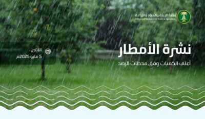 آخر الأخبار > “البيئة” ترصد هطول أمطار في (9) مناطق ومكة المكرمة تسجّل أعلى كمية بـ (56.8) ملم في العرضيات > IMG-20250505-WA0002-1-scaled
