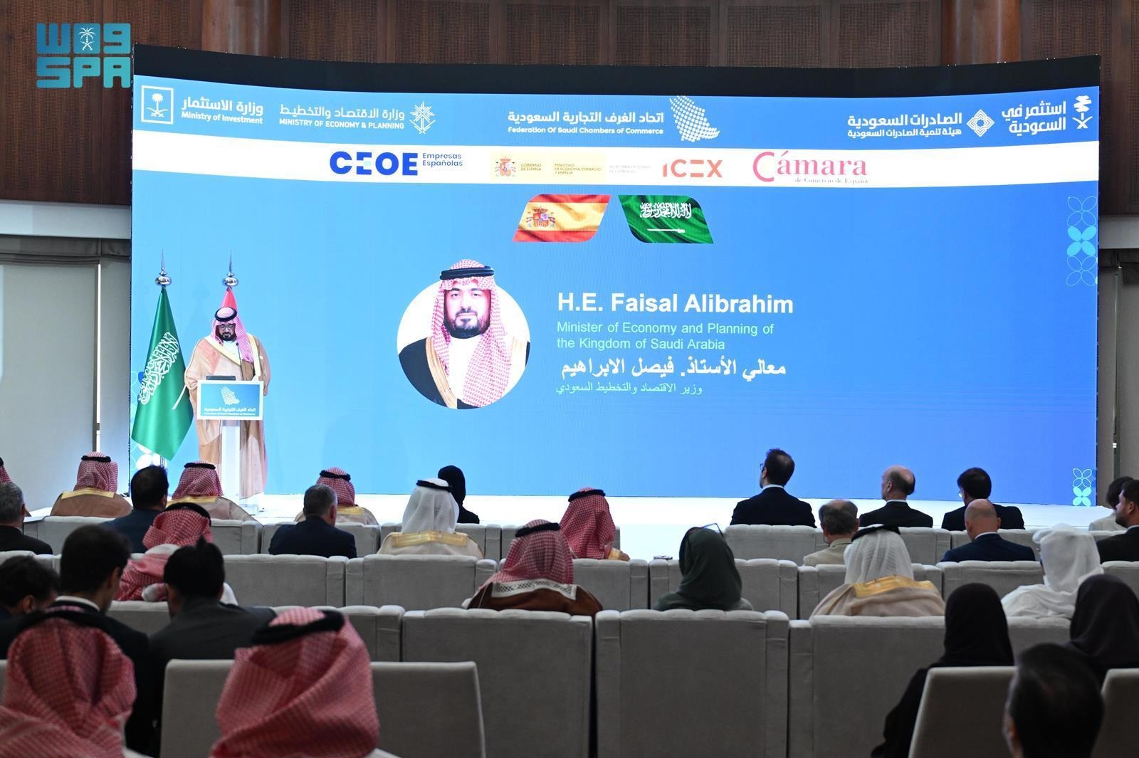 من جهته أكَّد وزير الاقتصاد والتجارة والأعمال الإسباني كارلوس كويربو، أن المملكة تعد أهم شريك بالمنطقة حيث زاد تواجد الشركات الإسبانية في المملكة بنسبة 57% خلال السنوات الثلاث الماضية، مبينًا أن الوضع الاقتصادي الحالي في إسبانيا مناسب لتعزيز العلاقات مع المملكة، مفيدًا أن إسبانيا وصلت لمستوى قياسي من القدرة التمويلية، فيما يشكل قطاع السياحة المحرك الرئيس، واحتلت مراتب متقدمة في استقطاب مشاريع الطاقة المتجددة، وأنشطة البحث والتطوير المتعلقة بالذكاء الاصطناعي.
