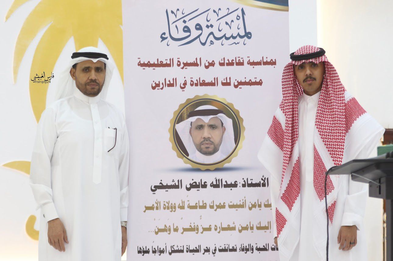 من جانبه، أوضح مدير متوسطة وثانوية الإمام الترمذي، الأستاذ عبدالله الغبيشي، أن الأستاذ عبدالله الشيخي يُعد من المعلمين المتميزين، حيث قضى أكثر من 33 عاماً معلماًومديرا ووكيلاً وموجهاً طلابياً .